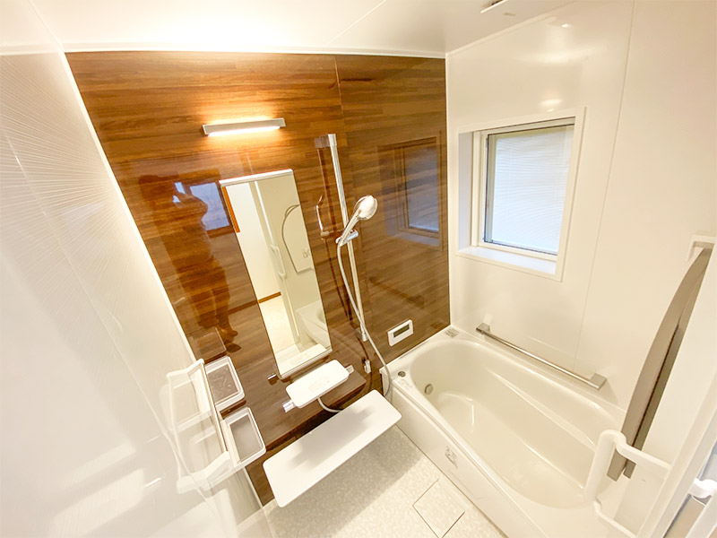 木目調パネルがモダンなユニットバス&使いやすくなった洗面所